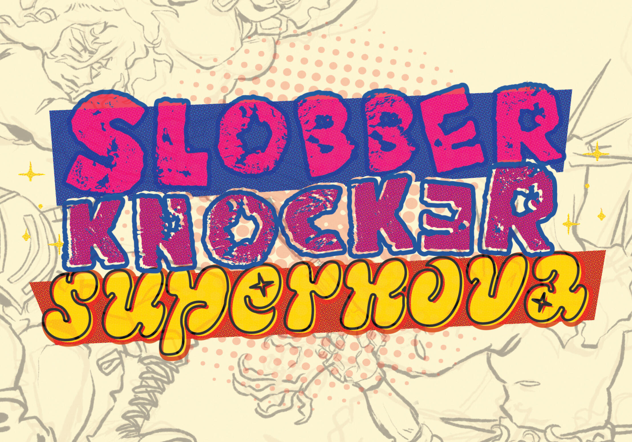 SLOBBERKNOCKER SUPERNOVASlobberknocker Supernova is an upcoming, high-octane rules-lite TTRPG about running from your past and securing your future. Written by Insha Fitzpatrick, Kayla is completing all artwork, art direction and book layout for this project.